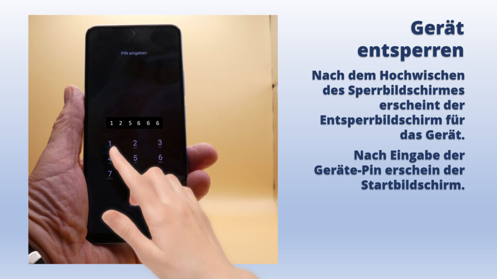 - Nach dem Entsperren des Smartphones mittels Code, Muster oder dem eigenen Fingerabdruck gelangt man zum Startbildschirm.