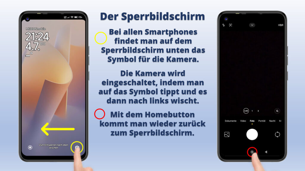 - Die Besonderheiten des Sperrbildschirmes, bei seiner Bedienung und woran man den Sperrbildschirm erkennt.