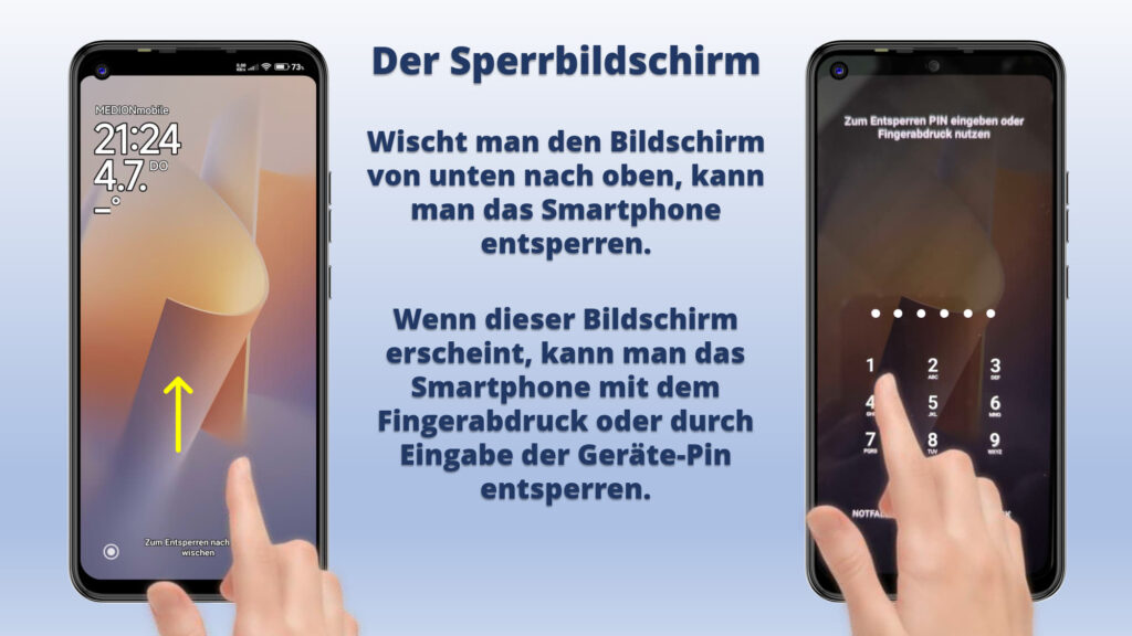 Bedienung Sperrbildschirm. Smartphone Ein- und Ausschalten.
