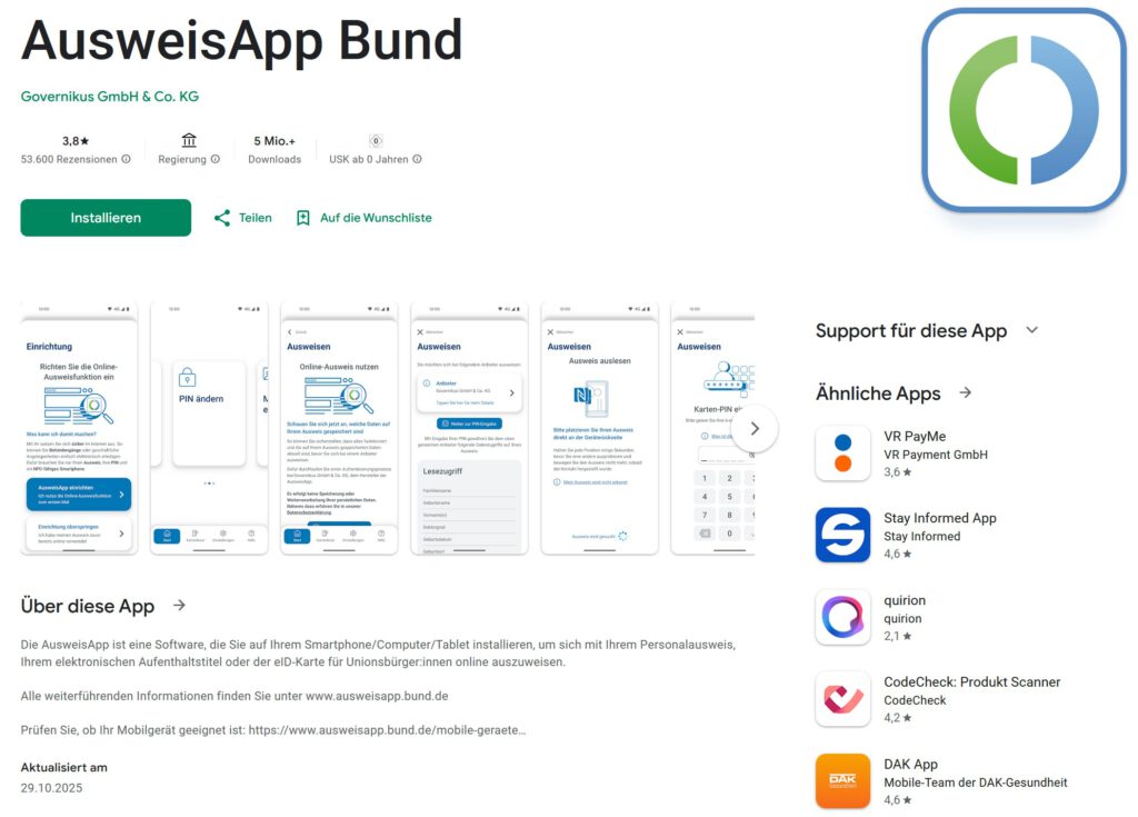 Sie benötigen die Ausweis-App, um bei Nutzung der Online-Ausweisfunktion eine sichere Verbindung zwischen Diensteanbieter, Ausweis und NFC-fähigem Smartphone bzw. Kartenlesegerät herzustellen.